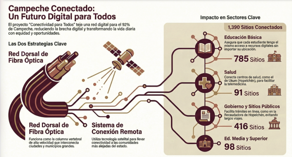 En síntesis, Campeche está intentando conectar para habilitar derechos —educación, salud, servicios— y usar ese mismo esfuerzo como palanca para fabricar oferta tecnológica local, con talento formado en proyectos reales y con redes directas hacia grandes plataformas.